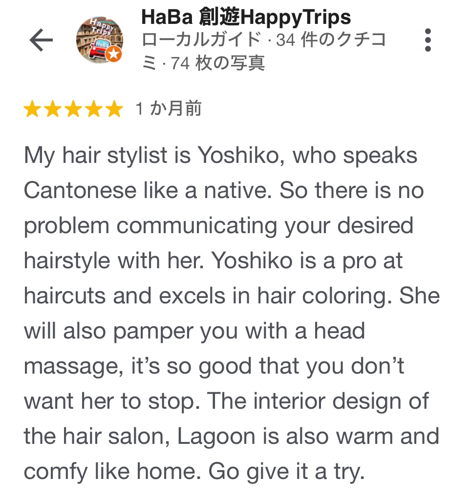 一個好舒適的環境,十分滿意我的新髮型,謝謝Suzuki さん😊