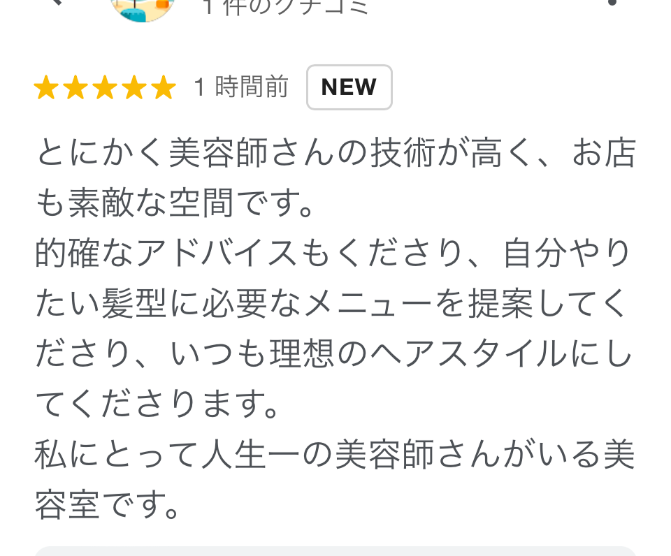 的確なアドバイスもくださり、自分やりたい髪型に必要なメニューを提案してくださり、いつも理想のヘアスタイルにしてくださります。私にとって人生一の美容師さんがいる美容室です。 -